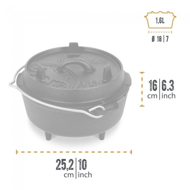 Cet élégant et robuste faitout Petromax de 3QT est parfait pour 1-3 personnes. Capacité de 2,3L. Maintenant avec un joli ensemble comprenant un levier de couvercle.